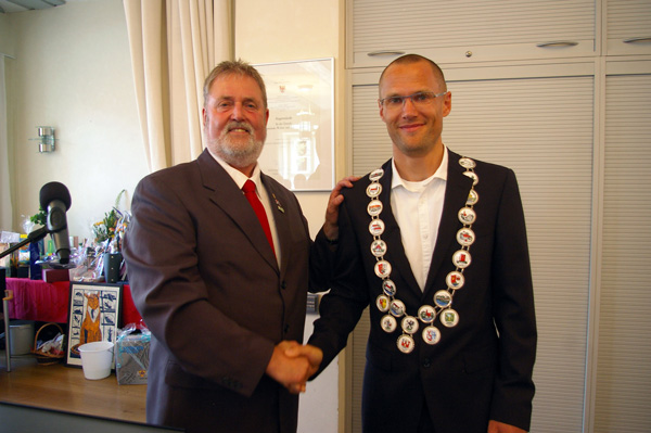 Besonders stellte er seine Verbundenheit zu Angermünde heraus, zu der Stadt, in der er geboren wurde, aufgewachsen ist, zur Schule ging, ins Krankenhaus kam und in der er die mit Abstand längste Zeit seines Berufslebens verbrachte. Dann, nach deutlich mehr als zwei Stunden voller Emotionen kam der Moment – in Anwesenheit von beinah hundert Gästen übergab Wolfgang Krakow im Rathaussaal an seinen Nachfolger Frederik Bewer, den die Bürger der Stadt am 8. Mai mit überwältigender Mehrheit in dieses Amt gewählt haben, nachdem Wolfgang Krakow seinen Verzicht auf einen erneuten Antritt zur Wahl erklärt hatte. Der Verantwortung entledigt, entledigte sich Wolfgang Krakow nun seines Jacketts und sang gemeinsam mit den Schwestern Marie und Sarah Svarovsky, die den Empfang mit Musik umrahmten, das Lied „Das war eine geile Zeit“. So werden ihn die Angermünder nun wieder öfter erleben. Singend und mit Gitarre.